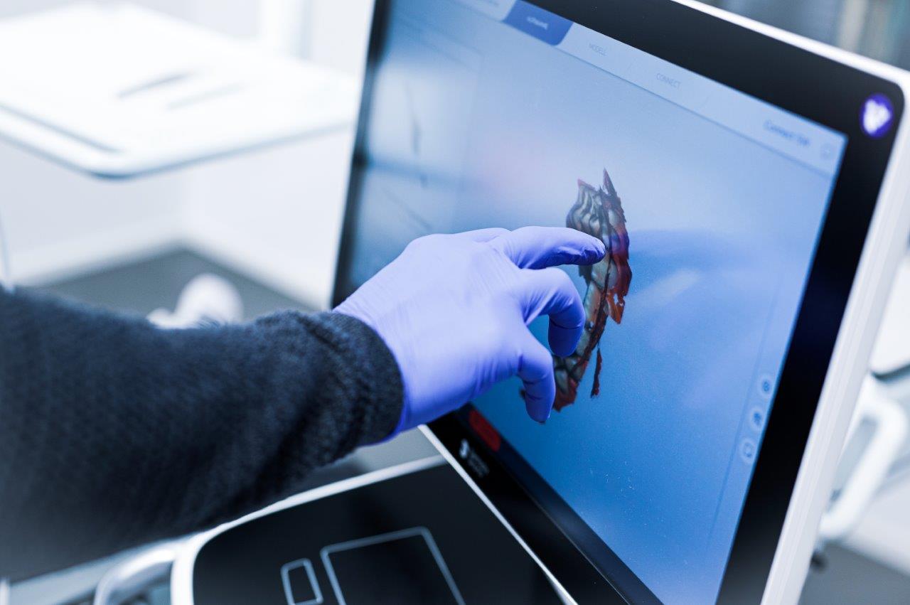 Durch die digitale Volumentomografie (DVT) werden der Mund, der Kiefer und das Gesicht des Patienten dreidimensional dargestellt.